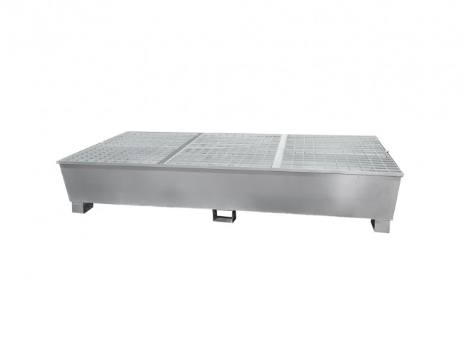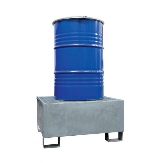 Les bacs de rétention acier galvanisé à chaud de grande capacité sont idéals pour le stockage de 1, 2, 4 fûts de 220L mais également pour 1 ou 2 IBC/Cuves de 1000L. Ils sont compatibles avec la plus part des chariots élévateurs et transpalettes.