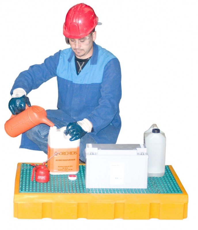 Notre bac de rétention est d’une forte résistante aux produits dangereux ou corrosifs (Acides, Base).