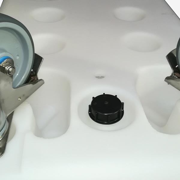 Notre bac de transport intègre un canal d'évacuation fermé par un bouchon. Cette vidange gros débit vous permet d'évacuer rapidement les liquides sans effort de manutention.
