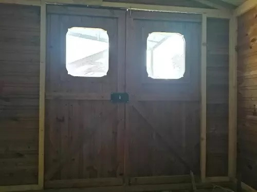 - Porte double avec lucarnes fixes en PVC, dimensions 1,60 x 1,82 m