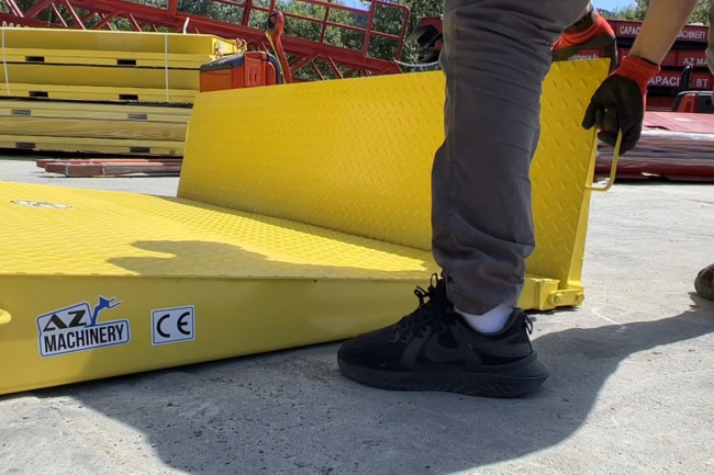 Rampe de chargement pour accès conteneur 20" posé au sol.