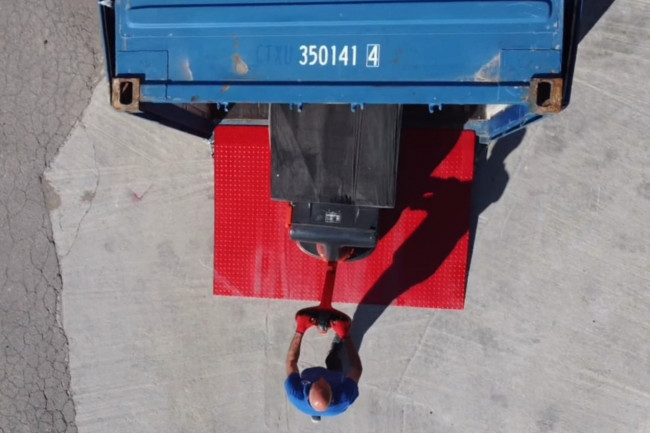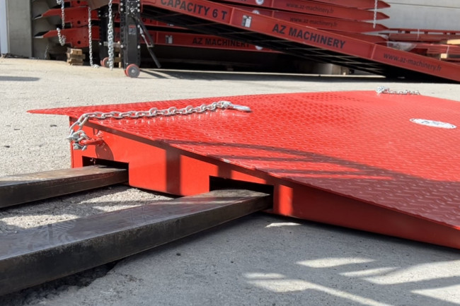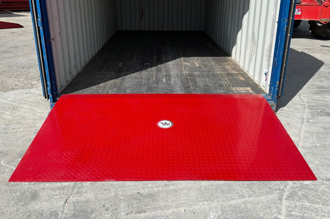 Rampe d’accès pour conteneur au sol, déplaçable pour des opérations de chargement / déchargement rapides de conteneurs. Posée à même le sol, cette rampe en acier permet de pénétrer rapidement à l'intérieur des conteneurs avec tout type de moyen de manutention (chariot élévateur, transpalette, gerbeur, et tout autre matériel roulant) Cette rampe se déplace facilement grâce aux deux fourreaux de fourche disposés sur ses deux faces latérales à l'aide d'un chariot élévateur. Sa constitution simple et robuste lui assure une capacité de 8 000 kg tout en restant un modèle économique.