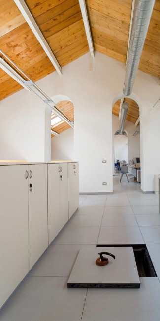 Le plancher technique stratifié est composé de plaques planes fabriquées à partir d'une couche de support formée de plusieurs feuilles de papier kraft imprégnées de résine phénolique.
