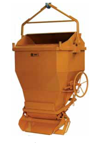 Benne de forme couchée à déversement latéral très utilisée pour le banchage et le coulage de plancher.
