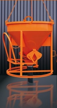 Cette benne permet le déversement vertical du béton par tuyau de goulotte.