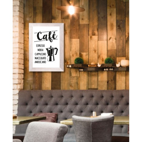 Ce cadre imprimé effet bois est destiné aux espaces de restauration tels que les cafés, restaurants, hôtels, etc.