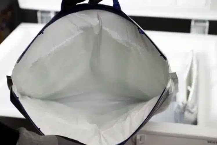 Le sac isotherme est constitué de couches multicouches (film PET métallisé, mousse de PE expansée, film PE interne blanc certifié pour contact alimentaire).