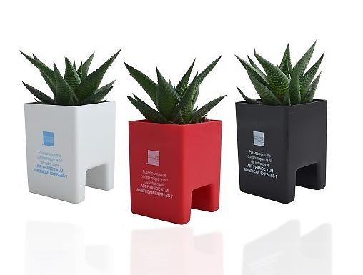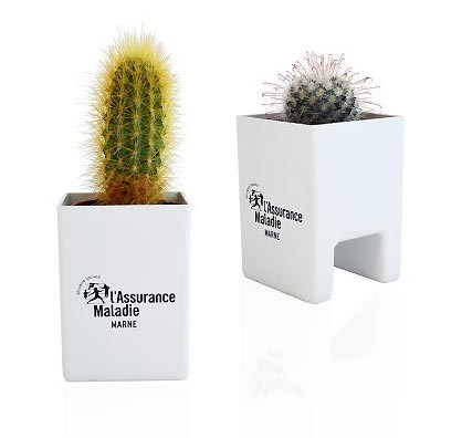 Pot à poser sur l'écran d'ordinateur avec forme spécifique, permettant une présentation ludique et utile pour avoir un brin de verdure à son travail.