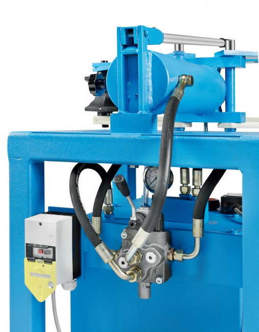 Le distributeur hydraulique est installé sur l'étage inférieur, tandis que la machine à cintrer les tubes se trouve à l'étage supérieur.