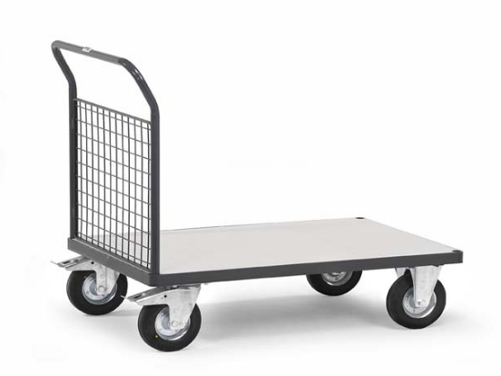 2 roues pivotantes et 2 roues fixes, moyeu à roulement à rouleaux.