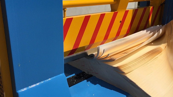 Cette cisaille de coupe permet de couper des bobines jusqu'à 3m de long.