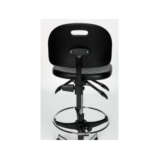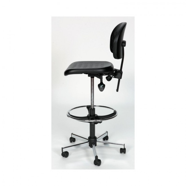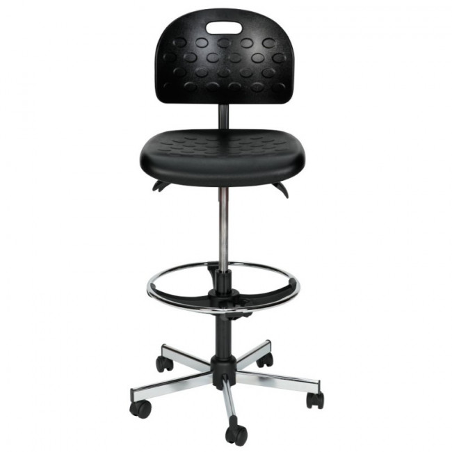Améliorez le confort des employés de votre atelier en optant pour cette chaise haute avec assise et dossier en polyuréthane.