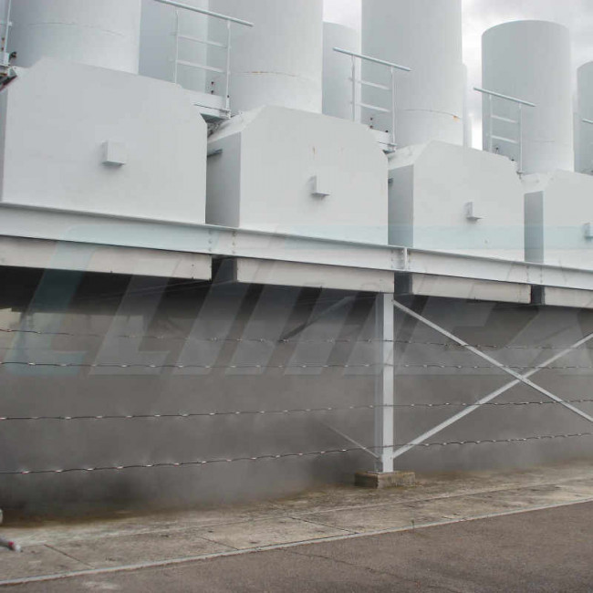 La brumisation haute pression que nous vous proposons diminue la température entrante dans les aérocondenseurs de 7 à 10°C en fonction des températures extérieures.