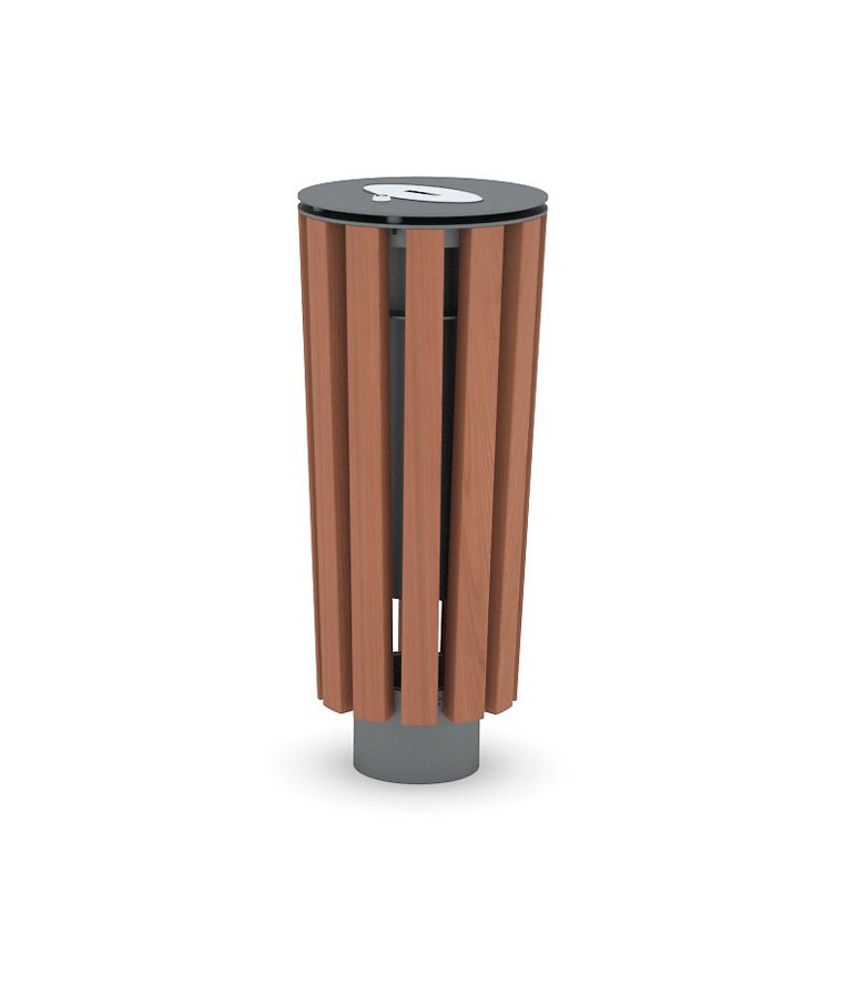 Ce cendrier public bois acier est doté d’une structure et tête en acier, des lattes en bois et bac intérieur en acier galvanisé.