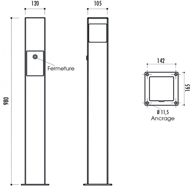 - À fixer au sol par vis d’ancrage 10 x 100, non fournies