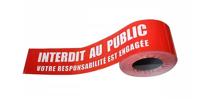 Ruban de balisage, interdisant ou limitant temporairement l'entrée de certaines zones.