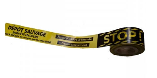 Des poursuites peuvent êtres engagées, c'est pourquoi les mentions « Enquêtes en cours », « ce dépôt a été pris en compte par la collectivité », ainsi que les sanctions « Jusqu'à 1 500€ d'amande + frais d'enlèvement » sont également mentionnées sur le ruban.