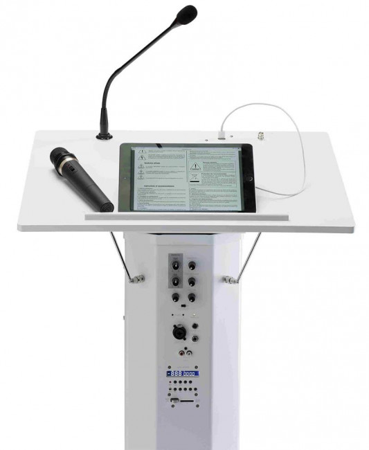 Ce pupitre de conférence 40 Watts est idéal pour prendre la parole debout devant un public.