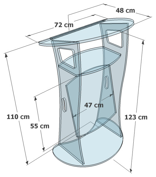 - 1 Pupitre de conférence - Plexiglas épaisseur 15 mm - L72 cm x l.48 cm x H.110 cm (réf: 362186603 / Code fiche produit : 16036168)