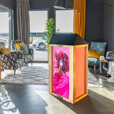 Pupitre de conférence en bois pliable - avec impression personnalisée - H.112 cm x L.60 cm x P.50 cm