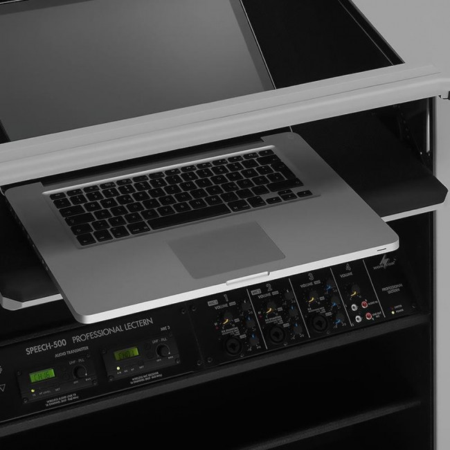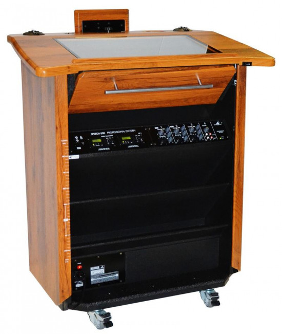 Ce pupitre professionnel de conférence amplifié est conçu pour assurer une transmission parfaite de discours, colloques et conférences.