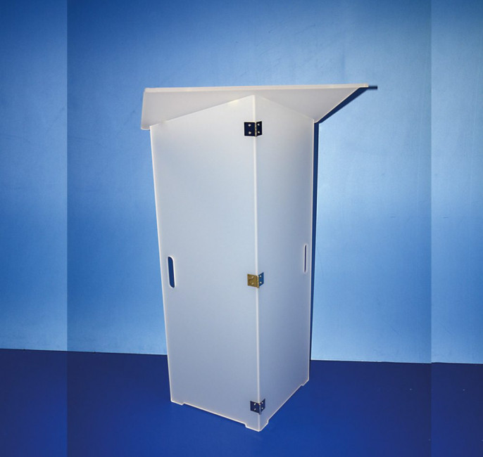 Conçu en plexiglass dépoli satiné avec un effet givré, il réduit les traces de doigts et offre une discrétion appréciée par les orateurs souhaitant se tenir partiellement dissimulés derrière leur support.