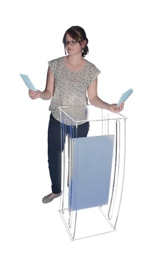 pupitre animateur plexiglas, spécialement conçu pour les centres d’animation, conférences et événements professionnels.