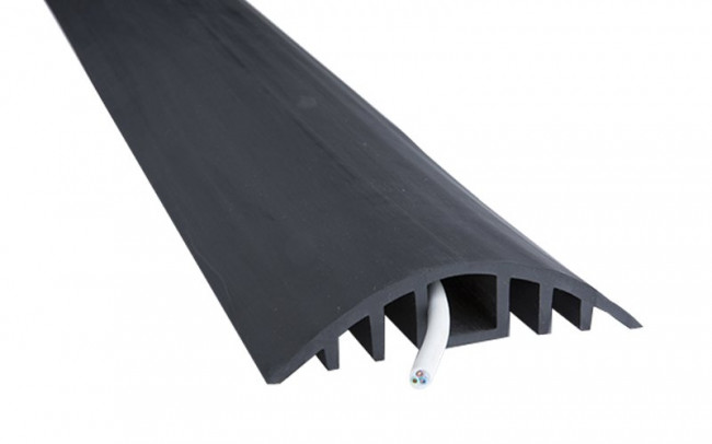 Ce protège-câbles est fabriqué avec un élastomère résistant mais souple.