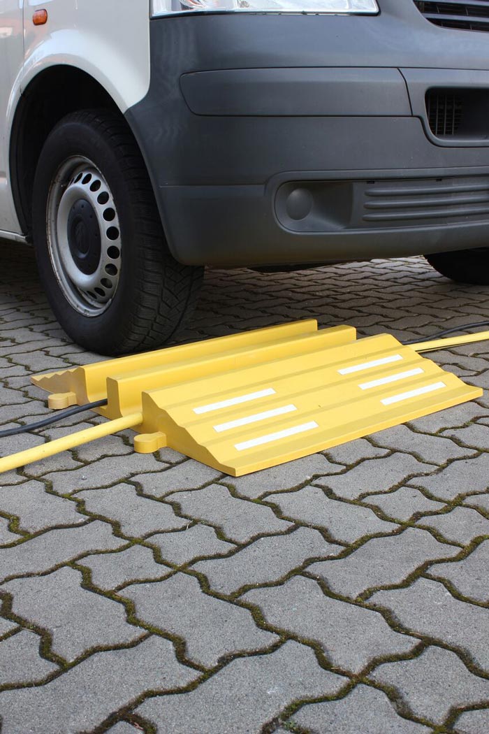 Afin de recevoir la caractéristique d‘un ralentisseur de vitesse, les parties jaunes et noirs peuvent être reliées ensembles.