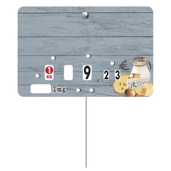 Cette étiquette fromagerie crémerie est conçue pour informer la clientèle sur le nom, prix et quantité de matière grasse dans les aliments.