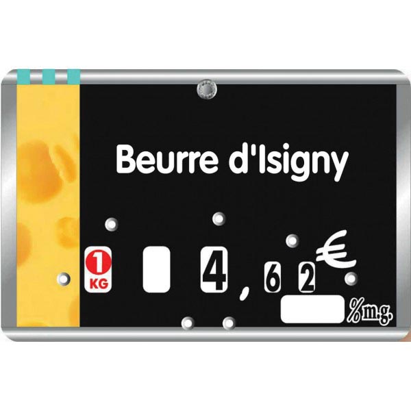 Conçue pour les vitrines réfrigérées, cette étiquette alimentaire permet d’afficher facilement le prix et le poids de vos produits laitiers.