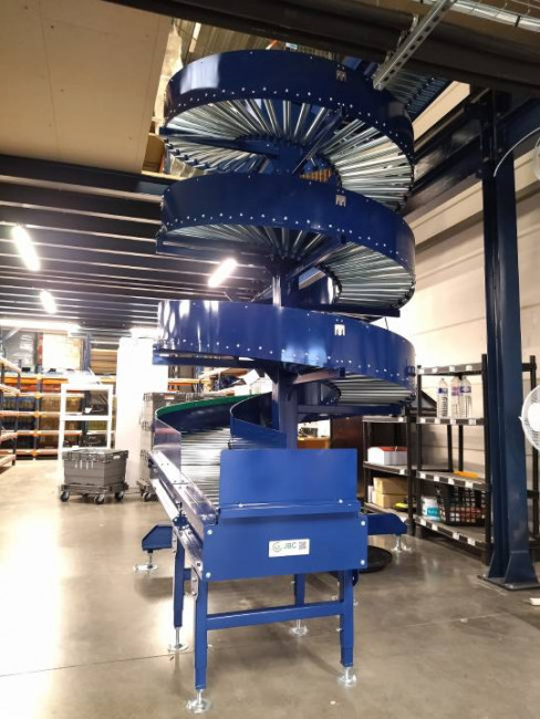 Ce convoyeur spiralé logistique libère de la surface au sol et s’intègre facilement dans toutes les zones de manutention gravitaire.