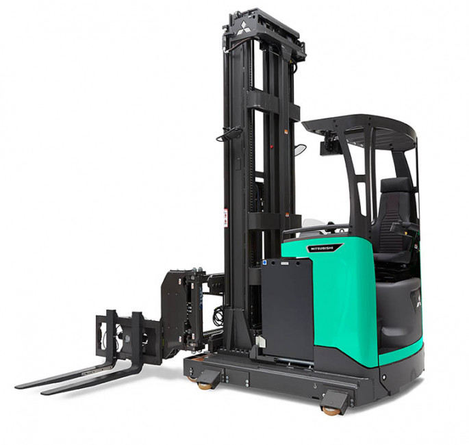 Ce chariot intègre les performances d'un chariot tri-directionnel et d'un chariot à mât rétractable, permettant aux opérateurs de gérer les palettes eux-mêmes, sans avoir à compter sur un personnel supplémentaire.