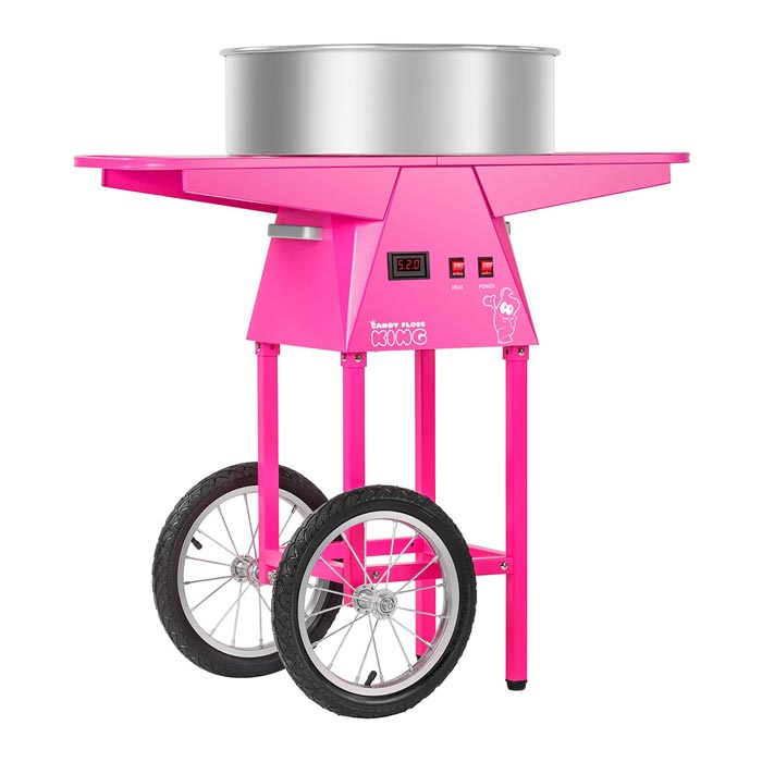 De plus, cette machine à barbe à papa est équipée de 2 roues assurant sa flexibilité et mobilité, ainsi qu'un roulement silencieux lors du déplacement.