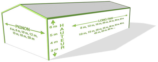 08/06/2022Bonjour, j"aimerais vous en envoyer un plan pour une demande de devis pour un hangar atelier de 18mx8m (pignon) de hauteur 4m aux gouttières. Avec deux portes sectionnelles de 3mx3,50m de haut, une porte métallique de 2mx2,40 de haut et une porte d"accès de 90x215. Toutes les portes seront sur le même pan de mur de 18m. Compter également 4 puits de lumière sur le toit.
