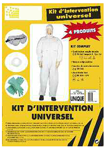 Kit d'intervention universel pour protection individuelle, il est fortement conseillé de se protéger grâce aux équipements de protection individuelle adaptés pour toute application de produits dangereux, pour cette raison nous vous proposons ce kit professionnel pour une protection individuelle efficace.
