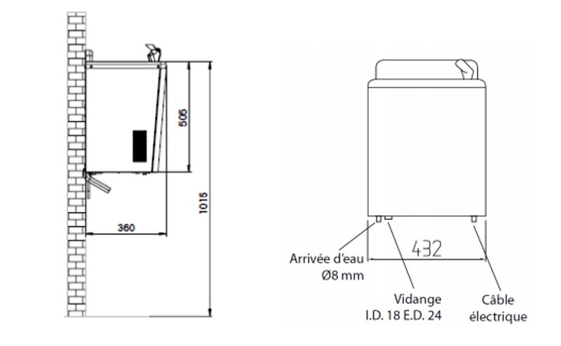 Fontaine d'eau réfrigérée murale - Débit 30 ou 55 L/h
