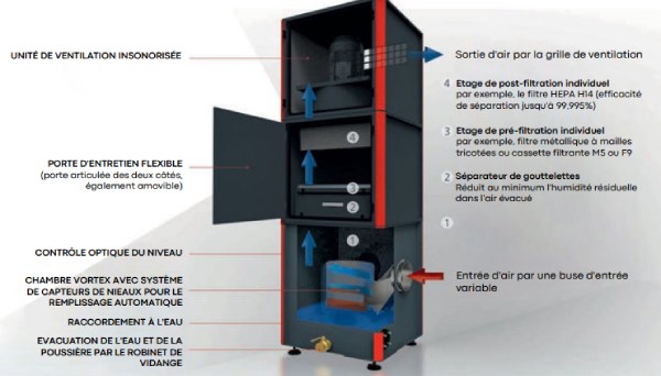 Le dépoussiéreur fixe à voie humide est un équipement industriel conçu pour purifier les airs de travail.