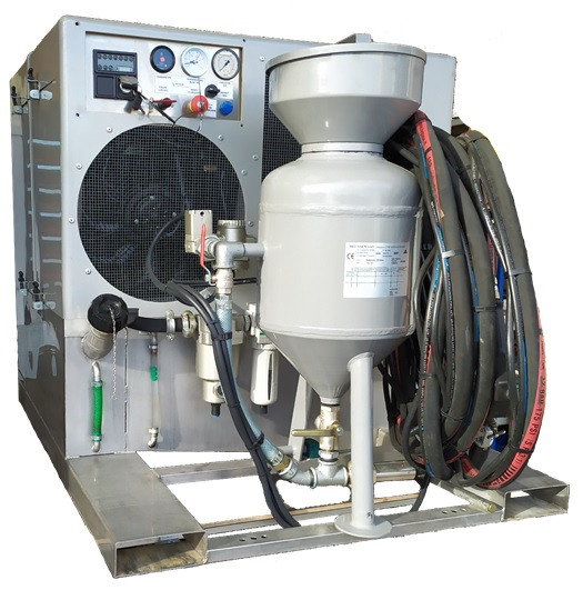 Un mélange air - eau microgranulat tendre est créé dans une chambre de mélange et expulsé dans un flux homogéne et tourbillonnant , appelé cône de projection.
