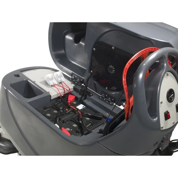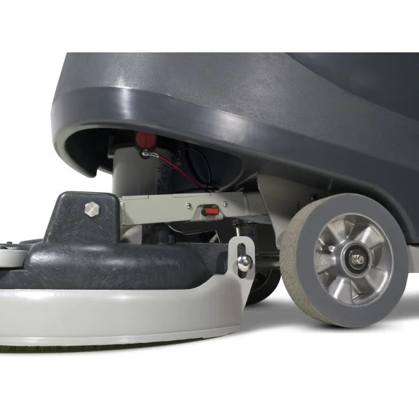 Cette autolaveuse autotractée à batterie dispose d'un moteur de traction qui facilite le nettoyage.