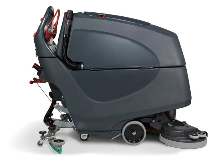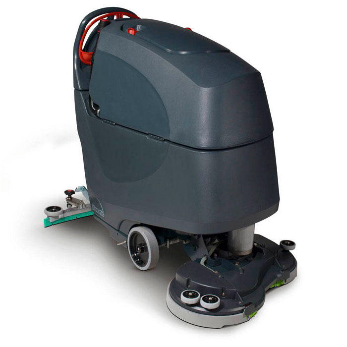 - Autolaveuse autotractée, marche avant/arrière, équipée de batteries gel 24V sans entretien et chargeur intégré,