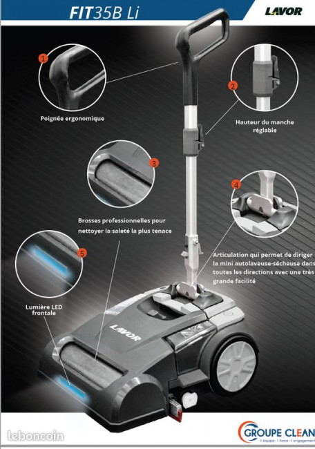 Cette autolaveuse convient pour un usage domestique ou en petite surface commerciale (magasins, bureaux, showrooms….)