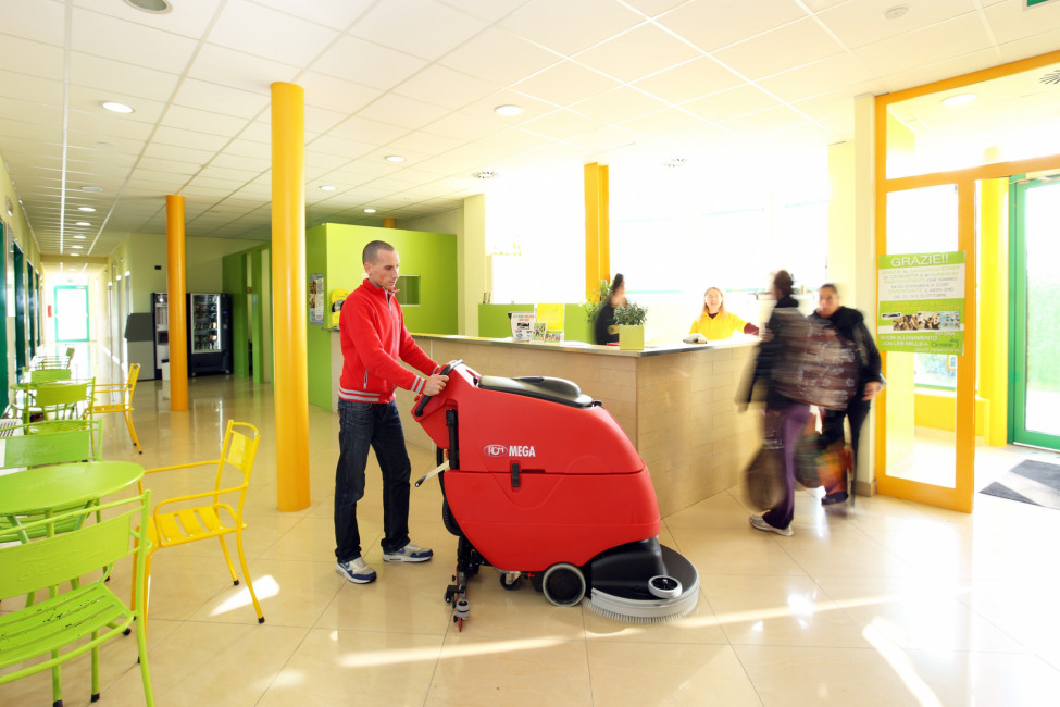 L'autolaveuse autotractée est idéale pour le nettoyage de grandes surfaces telles que :