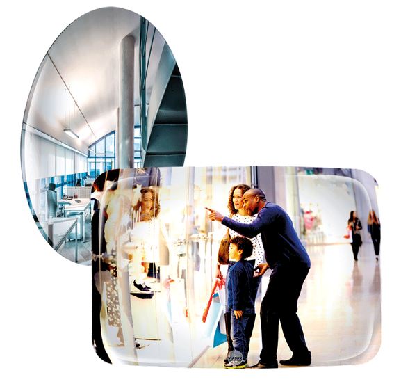 Demande de prix pour Miroir de surveillance magasin - Visibilité 15 à 30 m - Vision 90° - Dim. Ø800 et Ø900 mm ou L800 x l600 mm