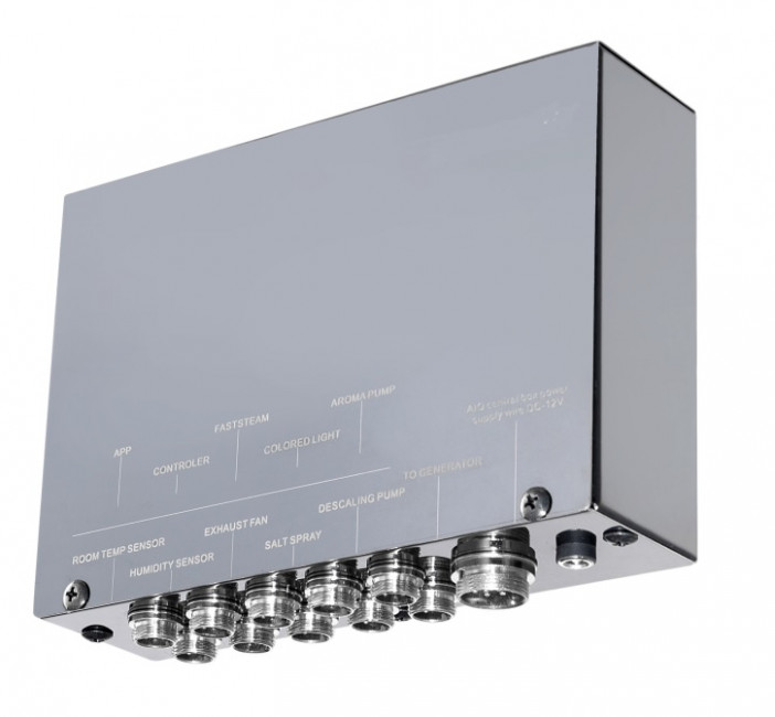 L'unité est également équipée d'un transformateur 12 V intégré pour le contrôle de l'éclairage de votre espace hammam, ajoutant une touche d'ambiance à votre expérience.