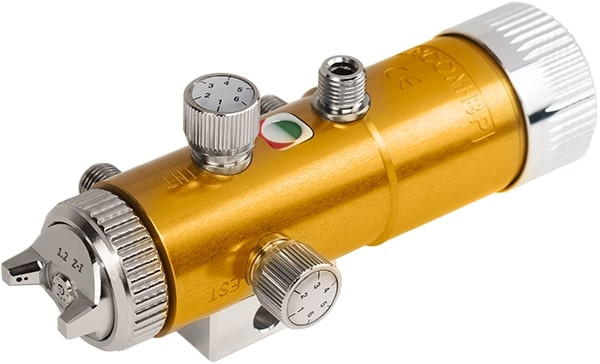 Le pistolet automatique se distingue par sa capacité à maintenir une pression de sortie de pigment remarquablement basse.