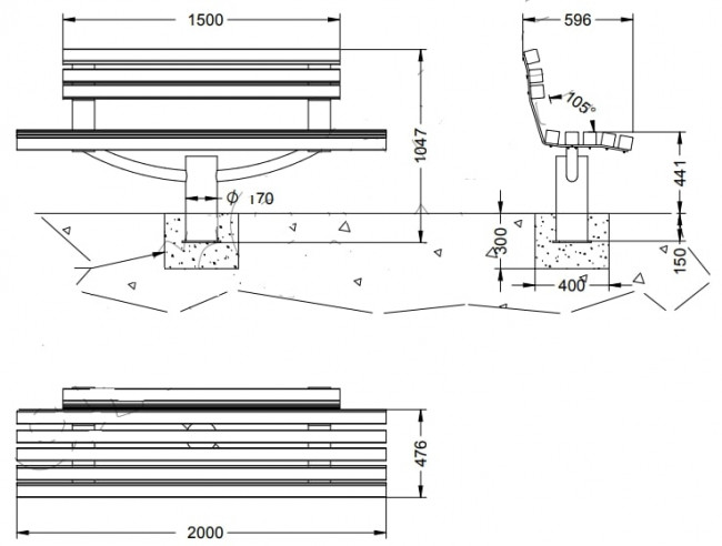 | Réf. TC :930782488 | Banc urbain en bois | 2000 | Bois tropical | A sceller | -