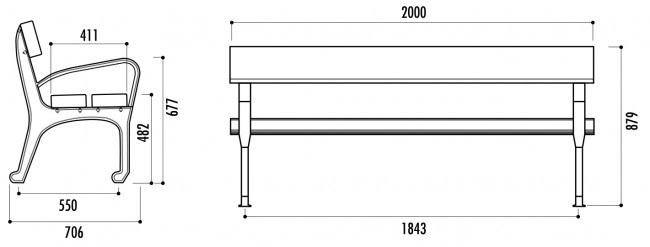- Entraxe de piètement : 1843 mm / 550 mm (largeur)
