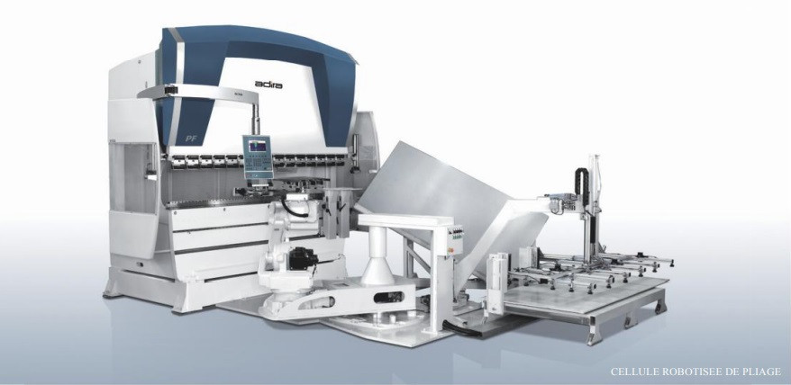 Une cellule robotisée de pliage est intégrée dans la presse plieuse ainsi qu'un servomoteur.