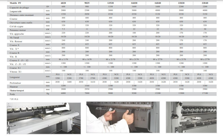 - Longueur de pliage : 2000 à 4000 mm